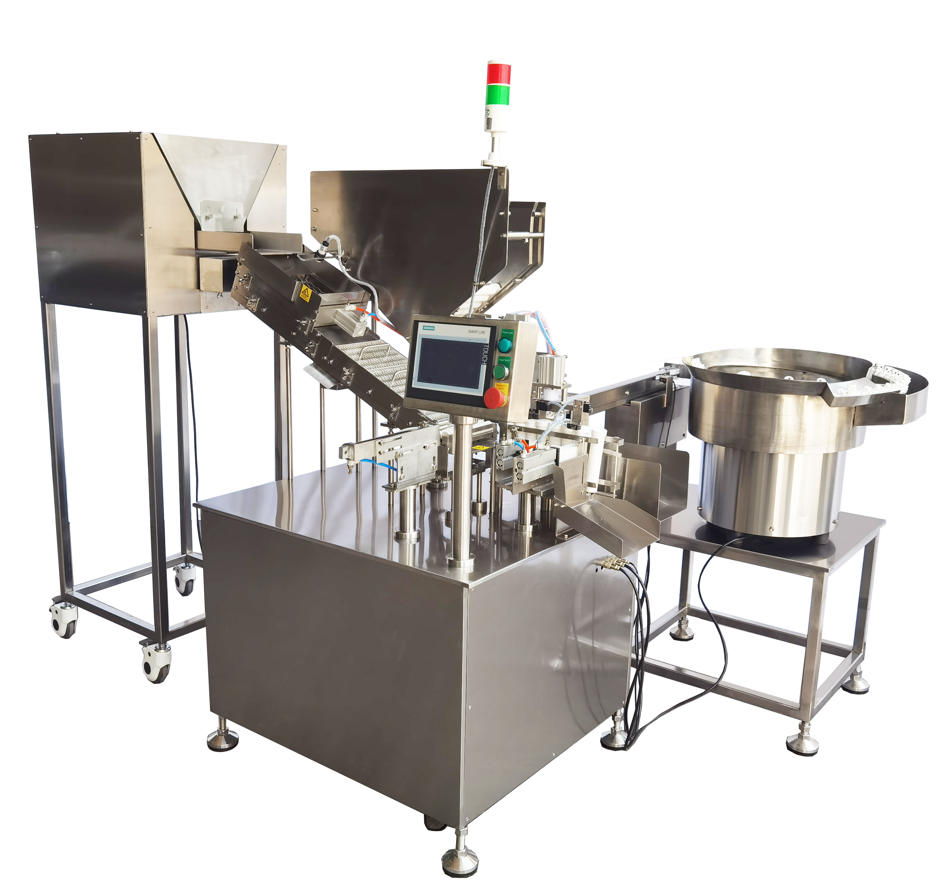Машина для наполнения и укупорки шипучих таблеток BSP-30 для шпульных бутылок применима для упаковки более крупных и тонких таблеток, которые упорядоченно подаются в шпульные бутылочки/тюбики в один ряд внахлест.