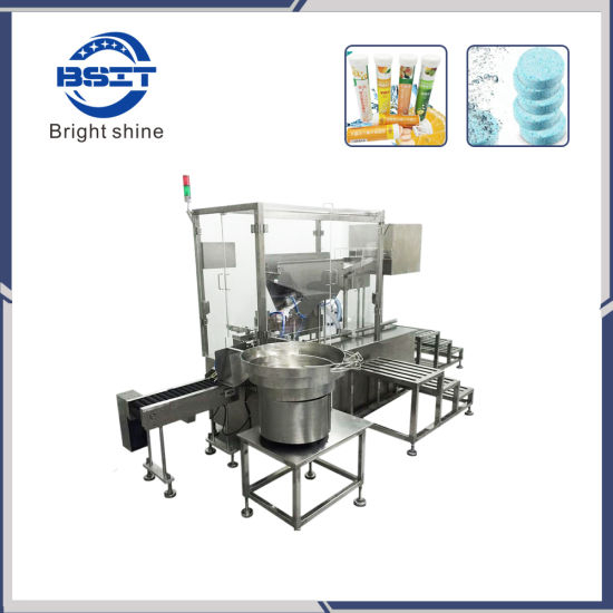 Машина для наполнения туб BSP-40A предназначена для упаковки больших и тонких таблеток, которые упорядоченно подаются в бобины в один ряд внахлест. Устройство полностью использует ПЛК для централизованного управления, оно проверено с помощью волоконных, фотоэлектрических и других видов обнаружения, чтобы иметь стабильную производительность и надежную автоматическую работу. Он может автоматически подавать сигналы тревоги и отключаться в случае отсутствия таблеток, бутылок или чехлов.