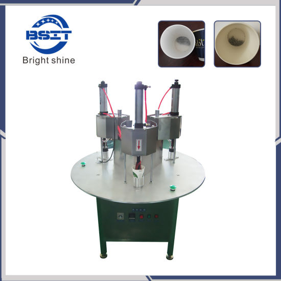 Машина для изготовления чашек для чая и кофе может закрепить чай, чайный пакетик или кофе на дне бумажного стаканчика с помощью круглой фильтровальной бумаги/алюминиевой фольги. Клиент получит чашку чая и кофе после того, как нальет в этот бумажный стаканчик горячую воду.