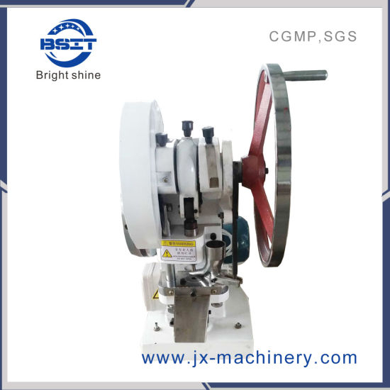 таблетки неправильной формы. Он оснащен небольшим настольным прессом для непрерывной раскатки листов. Это также может быть ручным управлением. На этом прессе можно установить только одну пару штампов. Как глубина наполнения материала, так и толщина таблетки