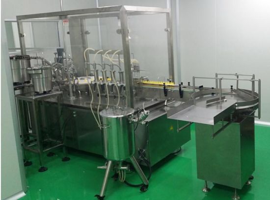 Жидкость для электронных сигарет, машина для наполнения, закупорки и укупорки капель для глазных капель для нанесения круглых бутылок с каплями или аналогичных, автоматическое заполнение продукта, установка пробки, установка крышки, завинчивание крышки. Машина состоит из загрузочного поворотного стола, керамического поршневого насоса (альтернативный перистальтический насос) и наполнительных насадок, сортировщика пробок и крышек, устройства для установки пробок и крышек, системы навинчивания крышек, разгрузочного лотка. Загрузка/выгрузка бутылок осуществляется вручную, через загрузочный поворотный стол Ø500 мм и разгрузочный лоток, или непосредственно с производственной линии. Он разработан и изготовлен в соответствии с правилами GMP.