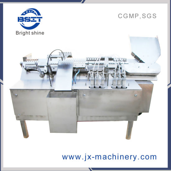 он подходит для наполнения и запечатывания ампул на фармацевтическом заводе. Машина имеет шесть рабочих положений, система шаговой передачи, группа из шести ампул входит в каждую позицию каждый раз, комплектная отправка бутылки осуществляется отдельно, заполнение азотом до, заполнение жидкостью, заполнение азотом после и процесс предварительного нагрева, запечатывания и т. д.